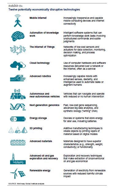 Source: McKinsey publication Disruptive technologies: Advances that will transform life, business, and the global economy