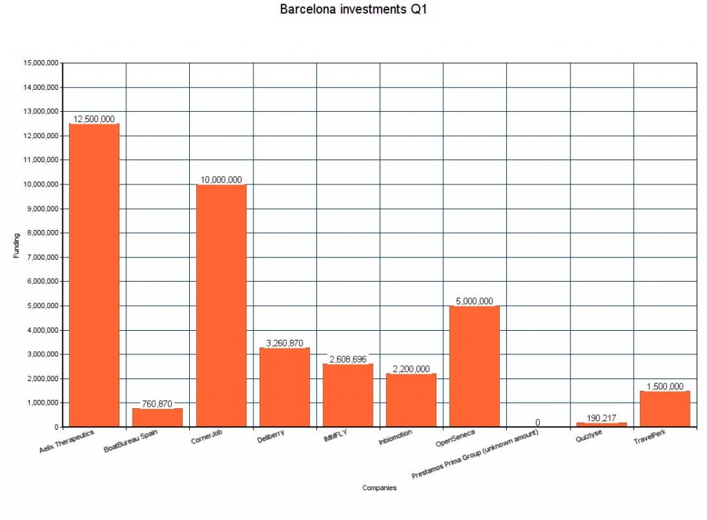 Barcelona surpassed €38.000.000 in Q1 investments. 10 companies got funded, most of them was seed-rounds.