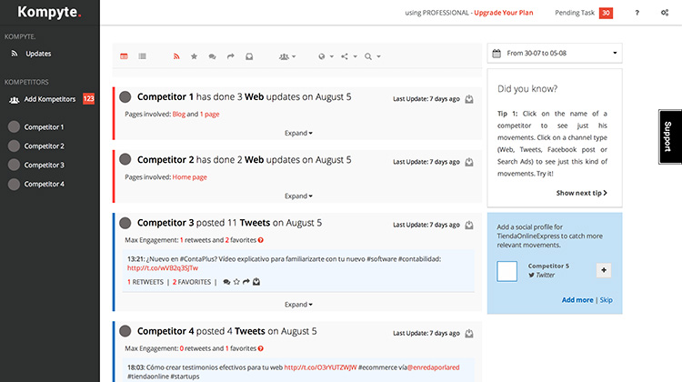 As founders, we all have those moments where we go a little batshit crazy over the competition. We waste too much time researching and focusing on what our competitors are doing rather than on the goals of our own company. That’s why the folks at Kompyte have just rolled out a series of tools that help monitor the online activity of your competition allowing you to save time and make strategic decisions based on said data.
