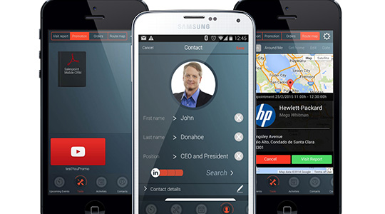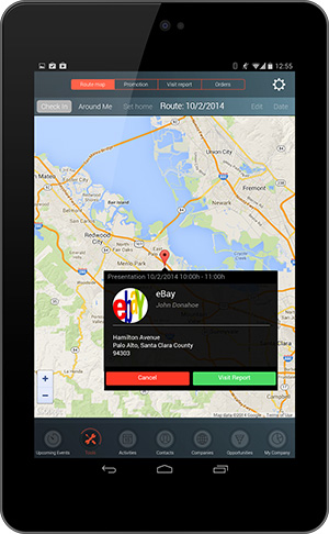 I already tested the iOS app and it’s definitely faster, more usable and features the same opportunity management, visit reports with photos and recordings, appointment check-in, appointment based route planning, business card attachments, reports and more, just now all from the device your always have in your pocket.