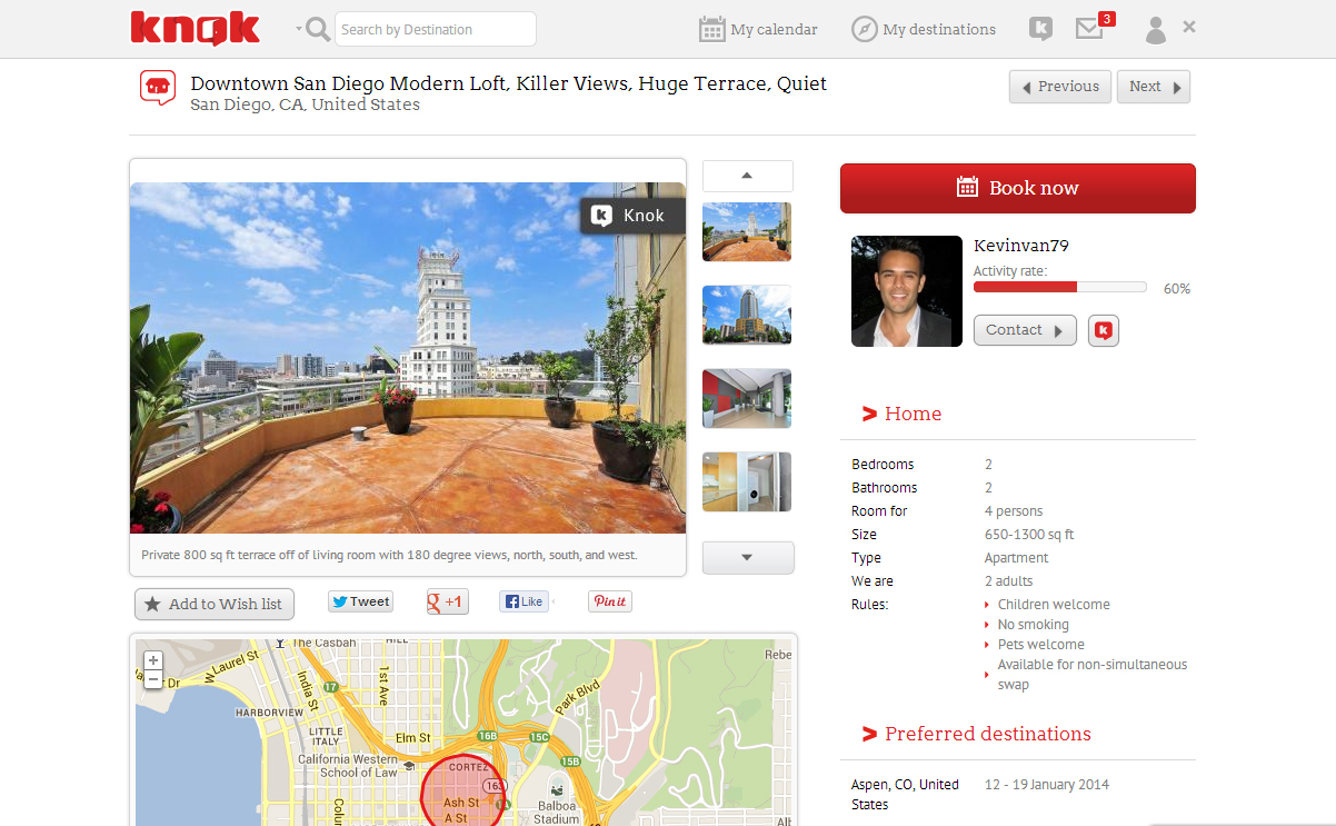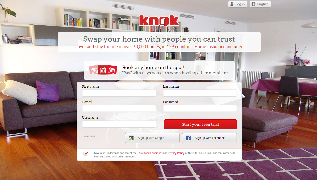 Knok Days is a credit system: you earn Knok Days when you lend your home to another member, and spend Days when you book other homes. You decide when your place is available with Knok Days by adding dates to your calendar. Then, you approve which members stay at your home after securely exchanging messages on Knok.com. As always, members have complete control over their exchange experience.