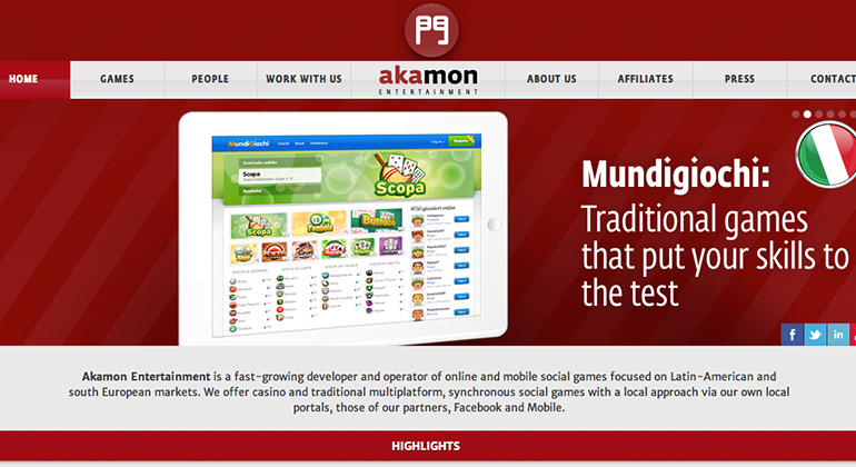Barcelona’s Akamon Entertainment is considered an international player in the social gaming field, owning over 35 titles such as Poker, Dominoes, Roulette and Tarot. They are dominating the Southern European and Latin markets. offering thier games through its own site, on Facebook and also partner sites, “localizing” the games to adapt to local versions of the game dynamics. You can read more here.