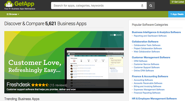 GetApp is a leading independent business applications marketplace focused primarily on SaaS and Cloud based apps. It allows businesses to compare different enterprise apps head to head hence shaving time off the buying process.