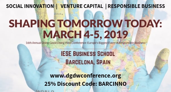 Passionate about the next big idea in social innovation?Network with the leading minds in responsible business at the 16th Annual Doing Good Doing Well Conference (DGDW 2019) on March 4th-5th! Pitch your social venture or startup idea to a London VC at DGDW! Read more about the event here & get your tickets here & 25% with the discount code: BARCINNO.