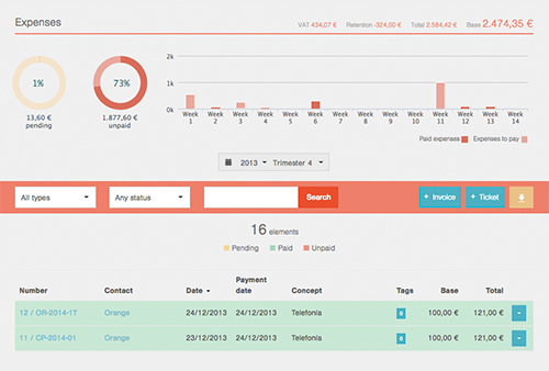 Barcelona startup Quipu is an online invoicing and accounting software that helps you deal with day to day admin tasks in a streamlined way so that you can invest your time on the fun and important stuff (i.e. sharpening pencils, office chair racing, etc). The nicely designed platform allows you to create invoices, expenses, estimates, save receipts to your mobile, track payments or manage your contacts, generate and files your taxes automatically and as expected, you can do it wherever you are on any device, so all of your data is in one place. Oh, and they encrypt all your information and store it in the cloud. “Quipu gives you the big picture of your company, empowering you to make better business decisions”, Roger says.