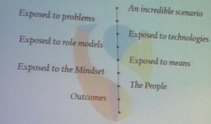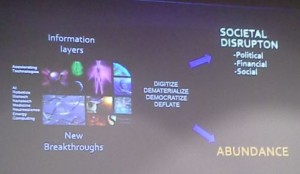 The presentation from Salim was highly inspirational, making you want to be part of the experience. You want to learn more about new ways of thinking of problems and about breakthroughs in ‘digitize’ (transforming in digital beings, from material driven (scarcity is dominant) to digital base: marginal costs go to zero, but resulting in other problems: abundance mentality, where do we find the information?), ‘dematerialize’ (3D printing/ digital fabrication: make objects repeatedly that can’t be molded and where complexity does not have to cost more. With 3D printing complexity is becoming free and this already counts for 70 materials), and ‘demonetize’ (new propositions and jobs; technology will replace 80% of doctors in 10 years). But it also leaves us with a lot of questions about what consequences all that change will evoke. And what do we want to reach?