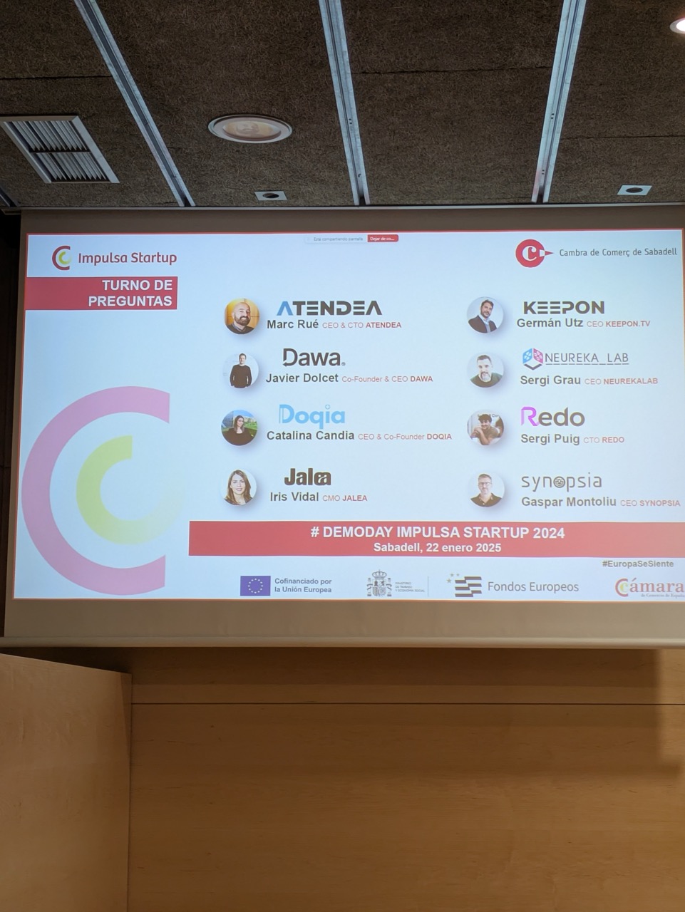 On January 22nd, the Cambra de Comerç de Sabadell, in collaboration with Conector Startup Accelerator, hosted the Demo Day for the 1st edition of the Impulsa Startup – Phase II Despega program. Held at the Cambra de Comerç Sabadell, the event brought together eight promising startups, eager to showcase their innovative projects to an expert jury and a room full of investors, mentors, and ecosystem players. The evening featured startup pitches, valuable insights from Carlos Blanco, and, of course, a lively networking session to wrap it all up.